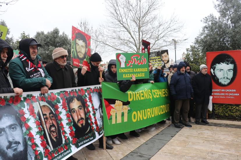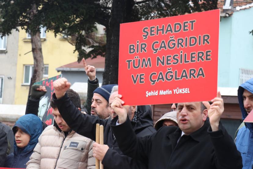 Şehit Metin Yüksel Platformu tarafından Fatih Camii'nde öğle namazının ardından düzenlenen programda bir araya gelen çok sayıda kişi, ellerinde taşıdıkları pankart ve dövizlerin yanı sıra attıkları sloganlarla merhumu rahmet ve minnetle andı.