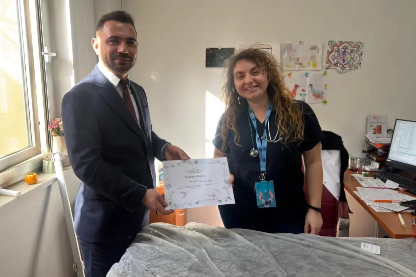 Hastaların ilettiği olumlu geri bildirimler ve genel hasta memnuniyet oranlarının yüksekliği üzerine, Hastane Başhekimi Dr. Fırat Güneş tarafından Uz. Dr. Nevin Çelik Fişek’e teşekkür belgesi takdim edildi.