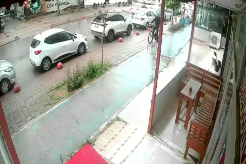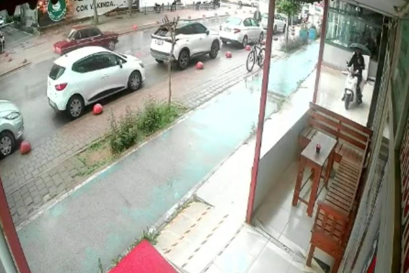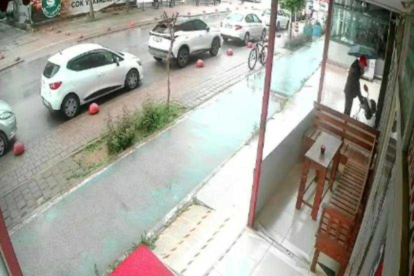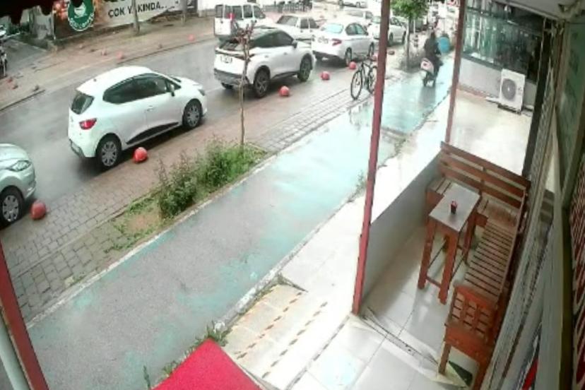 Hırsızlık anı güvenlik kamerasına yansıdı. Görüntüde bisikletle ilerleyen şüphelinin park halindeki motosikleti fark ettikten sonra birkaç metre ileriden geri döndüğü, bisikleti bırakıp çalıştırdığı motosikletle olay yerinden uzaklaştığı anlar yer aldı.