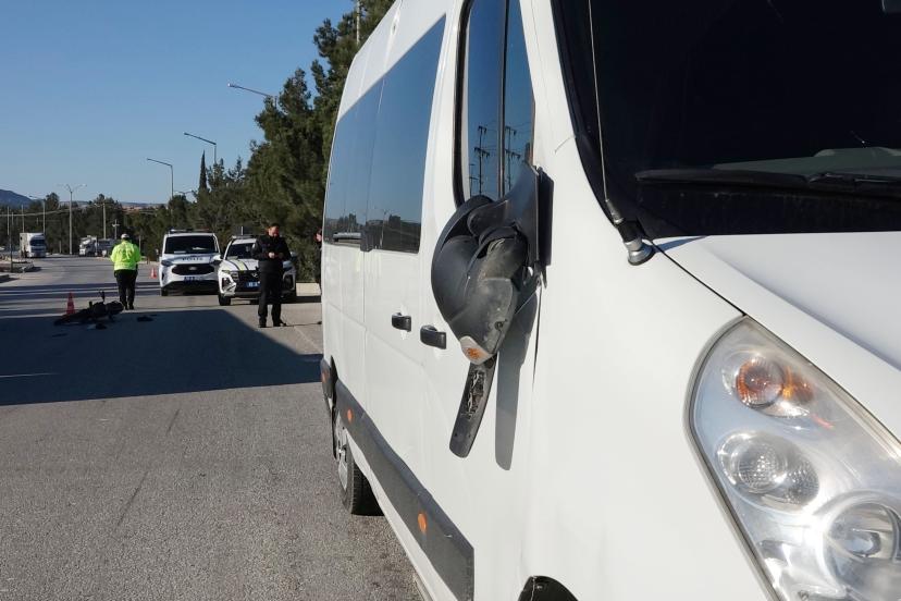 BURDUR'da Çevik Kuvvet ekip minibüsünün aynasının çarptığı motosiklet sürücüsü yaralandı.