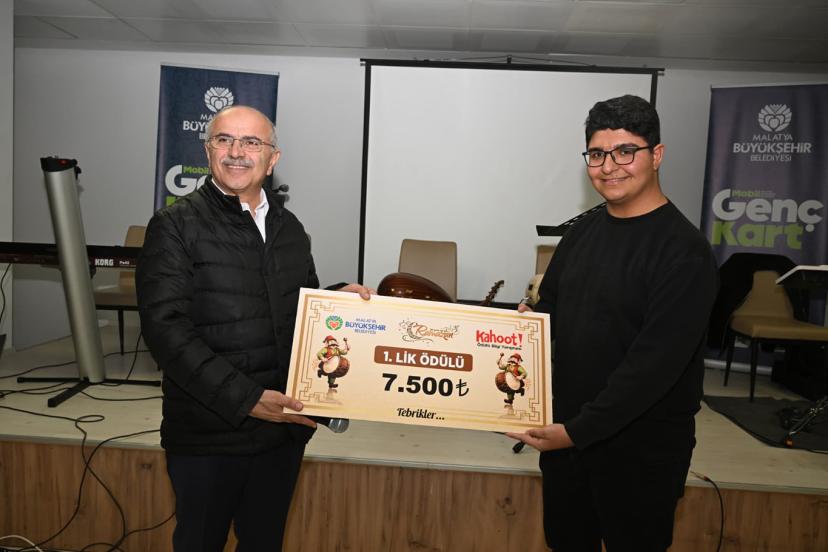 Başkan Er, öğrenciler arasında düzenlenen Kahoot ödüllü bilgi yarışmasında birinci olan Malatya Turgut Özal Üniversitesi Yazılım Mühendisliği ikinci sınıf öğrencisi Memik Kızık'a ödülünü takdim etti.