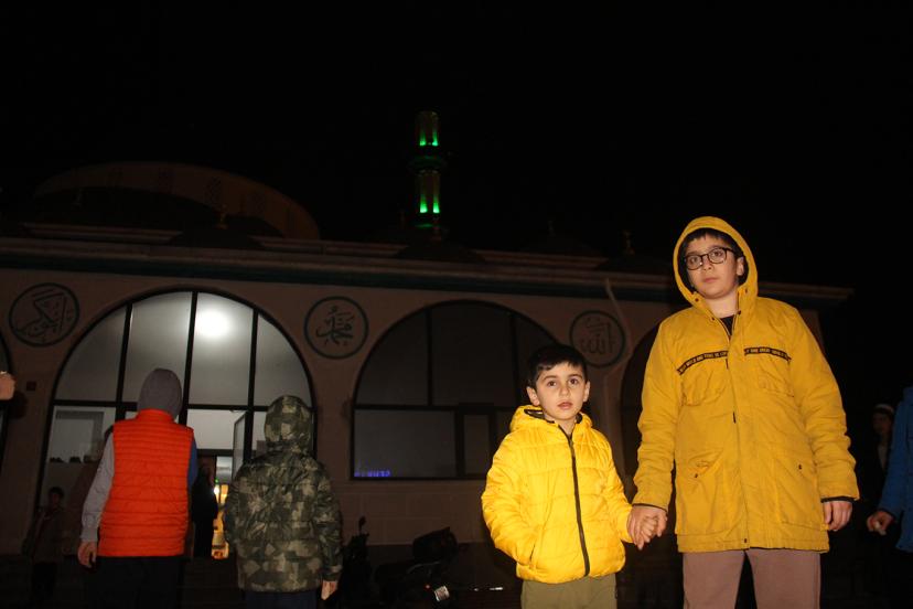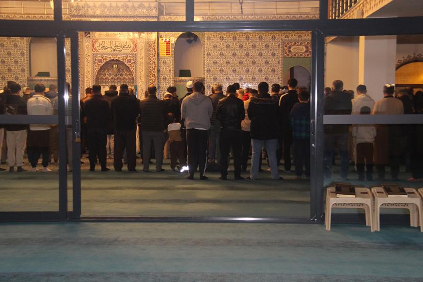 Cami içerisinde düzenli saf tutan cemaat, manevi atmosferin hissedildiği ilk gecede birlik ve beraberlik içinde ibadet etti.