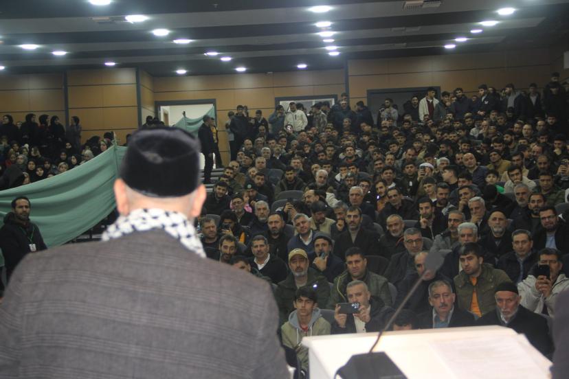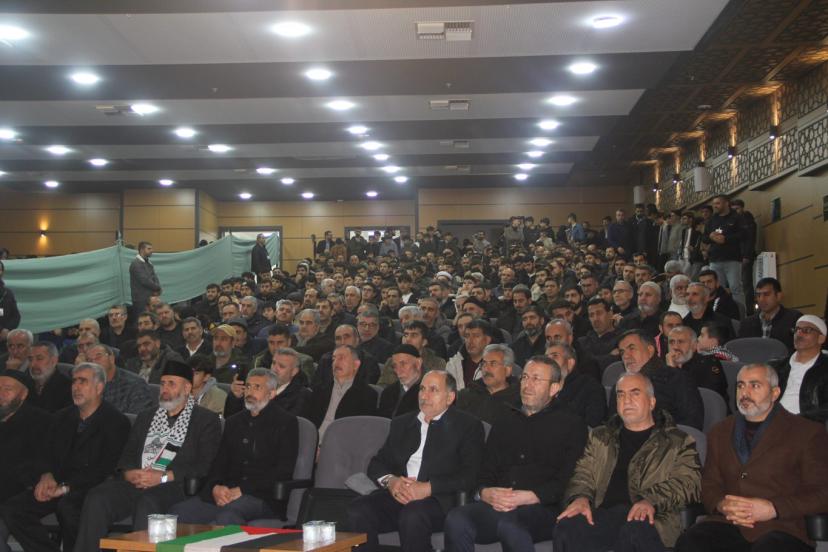 Cihadın sadece silahlı mücadeleyle sınırlı olmadığını kaydeden Tekruri, “Malumunuz, cihad sadece malla, bedenle olmaz; aynı zamanda malla, dille, kalemle olur. Cihadın birçok çeşidi vardır. Eğer ki bunları imkânımız nispetinde yapabiliyorsak, o zaman samimiyiz ve inşallah Yüce Allah bizi bu büyük mertebeye nail kılar, bize de o mükâfatı verir. Kardeşlerimiz Gazze’de açlıktan, soğuktan ölürken sizin burada refah içerisinde olmanız, keyif çatmanız caiz olabilir mi? Hayır, elbette. Sizler eğer ki Aksa mücahitleri ile beraber olmak istiyorsanız, “Keşke ben de onlarla beraber olsam.” diyorsanız, bu aşkı içinizde hissediyorsanız ve ispatını da yapıyorsanız, inşallah Allah size bu sevabı verir. Eğer biz cihadı bütün diğer çeşitleri ile malımıza, canımıza, evlatlarımıza, dünyaya tercih ediyorsak, o zaman evet, bunda samimiyiz demektir. Peki görevimiz nedir bu kardeşlerimize karşı? Maalesef Gazze’de kanlar biraz durdu ve biz de durduk. Şu anda giden yardımlar, o savaş meydanındaki zamanında giden yardımların çeyreği kadar ancak var. Demek ki ümmetin bencilliği, Gazzeli kardeşlerimizin yakıtı olmuş; sadece kan akınca biz de hareketleniyoruz, kendimize geliyoruz, bitince duruyoruz. Böyle olmaması gerekiyor. Şunu bilmemiz gerekiyor kardeşler: Bu verdiklerinizi sadaka olarak saymayın; bunlar mal ile cihattır. Mal ile cihat olarak görün. Çünkü Kur’an-ı Kerim’de mal ile cihat, can ile cihat etmenin ikizi sayılır. Hatta Kur’an-ı Kerim’de birçok yerde mal ile cihat, nefis ve canla cihattan önce gelir. Sadece bir yerde can ile cihat etmek malın önüne geçmiştir. Elbette ki bu, mal ile cihadın diğerinden daha önemli olduğundan değildir; ama Yüce Allah bize ikisinin kesinlikle beraber olması gerektiğini anlatmak için ikisini hep beraber zikrediyor. Yüce Allah bizleri kendi yolunda istihdam etsin, inşallah. Kardeşler, duygusallık, ağlamak, üzülmek yetmez. O şehitler kazandılar. Bizim de onların mükâfatına, cihadına, ribatına ortak olmamız gerekiyor. Allah hepinizden razı olsun.” İfadelerini kullandı.