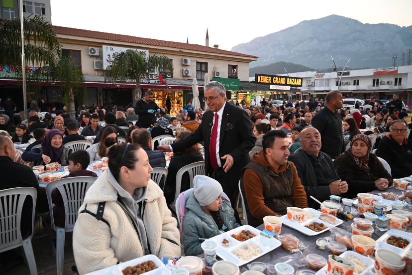 ANTALYA'nın Kemer ilçesinde Belediye Başkanı Necati Topaloğlu ev sahipliğinde iftar düzenlendi. Yaklaşık 5 bin vatandaşın katıldığı iftar programında Başkan Topaloğlu, meclis üyeleri ile birlikte vatandaşların Kadir Gecesi'ni de tebrik etti.