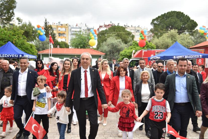 KEPEZ Belediyesi’nin 23 Nisan Ulusal Egemenlik ve Çocuk Bayramı kapsamında düzenlediği 23 Nisan Şenlikleri, bu yıl da büyük katılımla gerçekleştirildi. Dokuma Park’ta düzenlenen kortejde çocuklar, ellerinde bayraklar ve marşlar eşliğinde yürüyerek bayram coşkusunu doyasıya yaşadı. Kepez Belediye Başkanı Mesut Kocagöz de kortejde çocuklarla birlikte yürüyerek 23 Nisan’ın heyecanına ortak oldu.