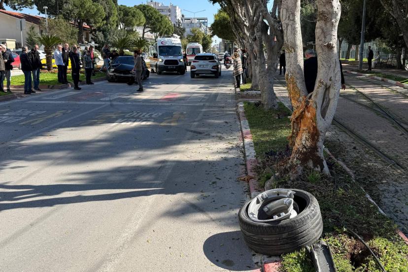 ANTALYA'da seyir halindeyken kontrolden çıkan otomobil yol kenarındaki ağaca çarptı. Kazada sürücü ve beraberindeki kadın yaralandı. Kazanın şiddetiyle aracın tekeri yerinden çıkarken, jantının kırıldığı görüldü.