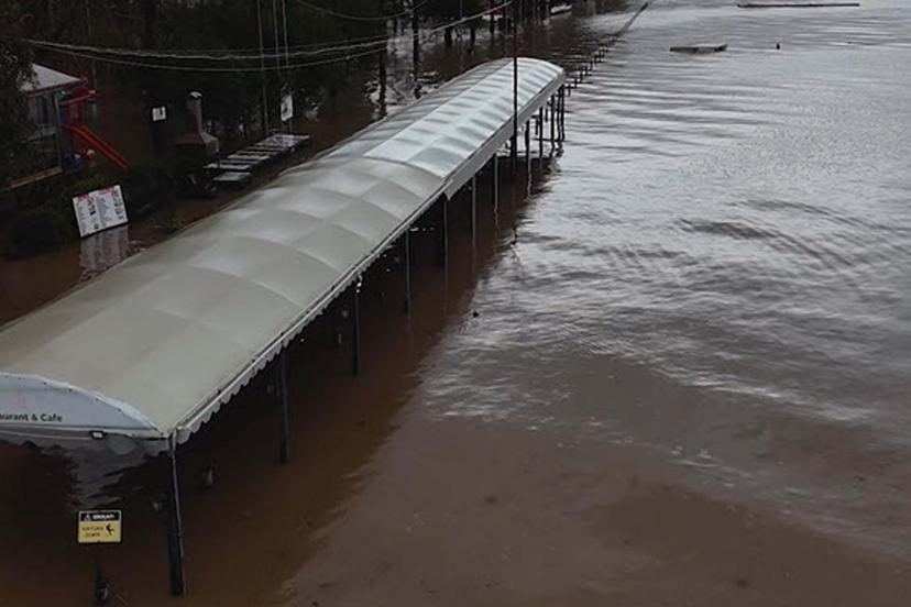 MUĞLA'nın Köyceğiz ilçesinde şiddetli yağış nedeniyle taşan Köyceğiz Gölü, kordondaki iş yeri, ev, cadde ve sokakları su altında bıraktı. Bölge, dron ile havadan görüntülendi.