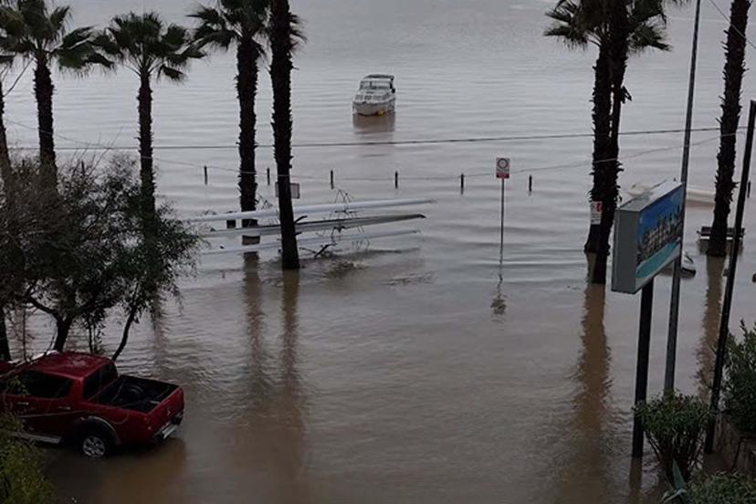 MUĞLA'nın Köyceğiz ilçesinde şiddetli yağış nedeniyle taşan Köyceğiz Gölü, kordondaki iş yeri, ev, cadde ve sokakları su altında bıraktı.