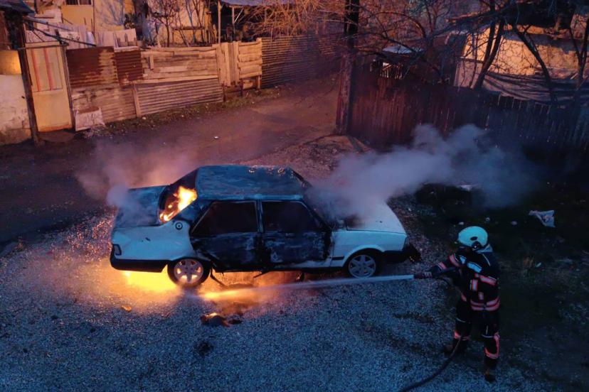 Malatya'da park halindeki otomobilde yangın