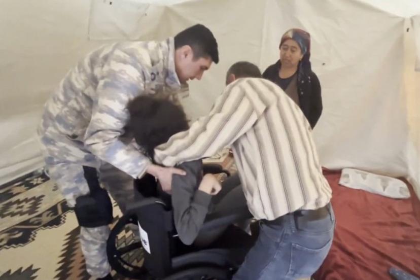 Malatya'da bir depremzede, çok üşüdüğünü ve yardımına gelen askerin kendisine montunu ve ayakkabılarını verdiğini söyleyerek, "Bana bir evlat, ana gibi sahip çıktılar. sarıp sarmadılar bizi." dedi.