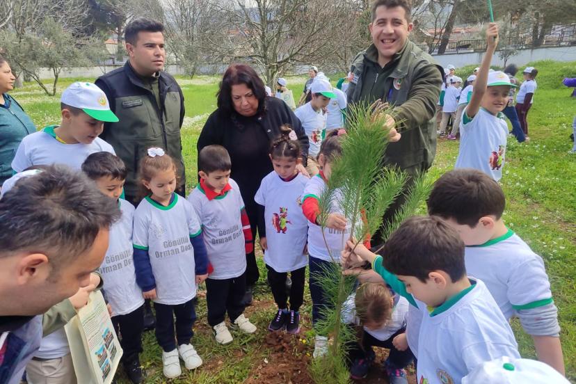 MUĞLA'da, 'Orman Haftası' etkinlikleri kapsamında anaokulu ve ilkokul öğrencileri tarafından fidan dikimi gerçekleştirildi.