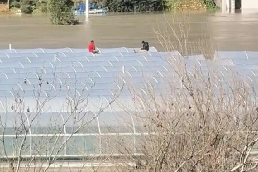 Sağanakta su basan seranın çatısında mahsur kalan 2 kişi botla kurtarıldı