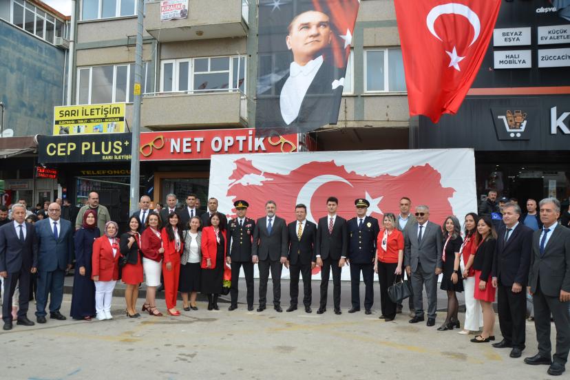 İlçe Milli Eğitim Müdürü İkram Ekiz'in Cumhuriyet Meydanı'nda Atatürk Anıtı önüne çelenk sunumuyla başlayan tören, saygı duruşu ve İstiklal Marşı'nın ardından Akçaalan Ortaokulu öğrencileri tarafından düzenlenen gösteri ve etkinliklerle devam etti. Törene Kaymakam Cemal Şahin, Belediye Başkanı Kadir Kumbul, Cumhuriyet Başsavcısı Muhammed Kaan Özel, İlçe Jandarma Komutanı Üsteğmen Ali Duman, İlçe Emniyet Müdürü Harun Mere, kurum müdürleri, STK temsilcileri, muhtarlar, gaziler, şehit yakınları ve vatandaşlar katıldı.