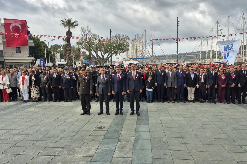 Bodrum'da 23 Nisan Ulusal Egemenlik ve Çocuk Bayramı kutlamaları, sabah saatlerinde Belediye Meydanı'ndaki törenle başladı. Törene Bodrum Kaymakamı Ali Sırmalı, Bodrum Belediye Başkanı Tamer Mandalinci, Garnizon Komutanı Personel Albay Ayhan Ulutaş, Bodrum İlçe Milli Eğitim Müdürü Özcan Kuşçu, Bodrum İlçe Jandarma Komutanı Yarbay Kamil İncebacak, Bodrum İlçe Emniyet Müdürü Mehmet Darendeli, Bodrum Sahil Güvenlik Karakol Komutanı Binbaşı Raşit Gödelek, kurum amirleri, gaziler, siyasi parti ve STK temsilcileri, öğrenciler, öğretmenler ve vatandaşlar katıldı. Atatürk Anıtı'na İlçe Milli Eğitim Müdürlüğü çelenginin sunulmasının ardından saygı duruşunda bulunuldu, İstiklal Marşı okundu.