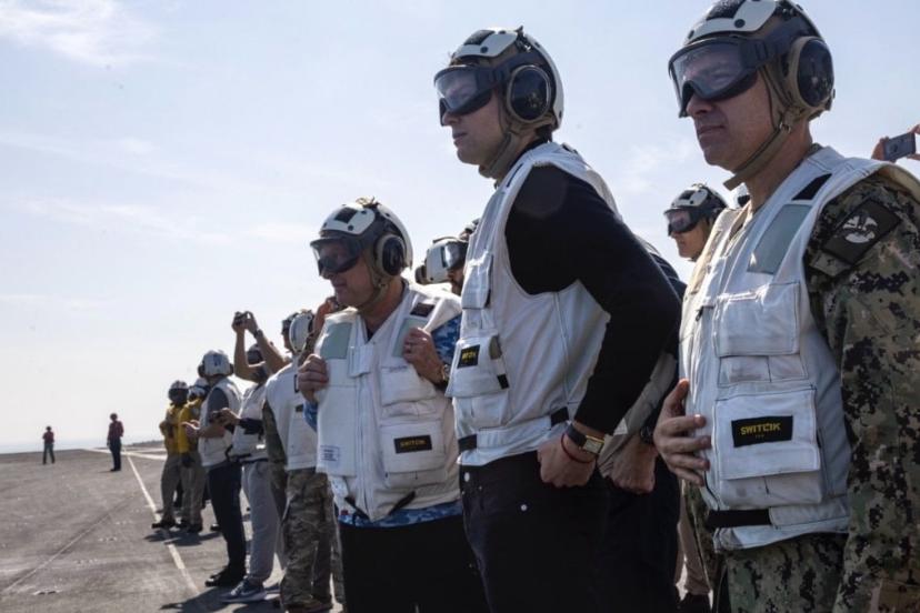CENTCOM'un açıklamasına göre, Amiral Cooper, Witkoff ve Kushner ile Umman Denizi'nde seyreden uçak gemisindeki mürettebatı ziyaret etti.