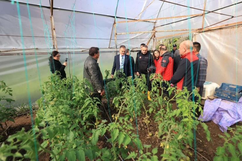 Vali Akbıyık'tan afetten zarar gören seralarda inceleme