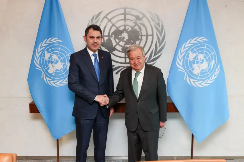BM binasındaki görüşmede COP31 sürecini ele aldıklarını belirten Bakan Kurum, “Görüşmemizde, küresel iklim krizi, enerji güvenliği ve savunmasız toplulukların korunması gibi kritik konuların yanı sıra Sıfır Atık ve döngüsel ekonomi yaklaşımları, finansman, teknoloji transferi ve kapasite geliştirme konularına da değindik. Çok taraflılığı güçlendirmek ve iklim eyleminin uygulanmasını hızlandırmak için COP31’i güven ve diyalog, uzlaşma ve eylemin merkezi bir platformu olarak görüyoruz; Antalya’daki liderler zirvesi ile tüm dünyaya ortak sorumluluk mesajı göndermeye hazırlanıyoruz. Bu verimli toplantı ve değerli iş birliğimiz için Genel Sekreter’e teşekkür ediyorum” paylaşımını yaptı.