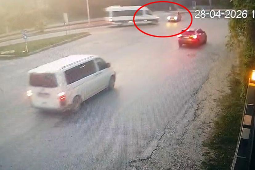 ANTALYA'nın Manavgat ilçesinde tur minibüsü ile otomobilin çarpışması sonucu meydana gelen kazada 4 kişi yaralandı. Kaza anı güvenlik kamerasına yansıdı.